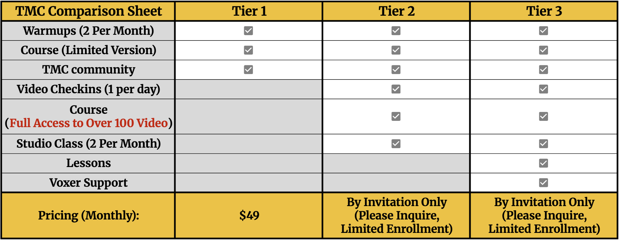 “The caliber of instruction, playing, and expertise found in TMC is at the highest level of excellence.” - KathyRose